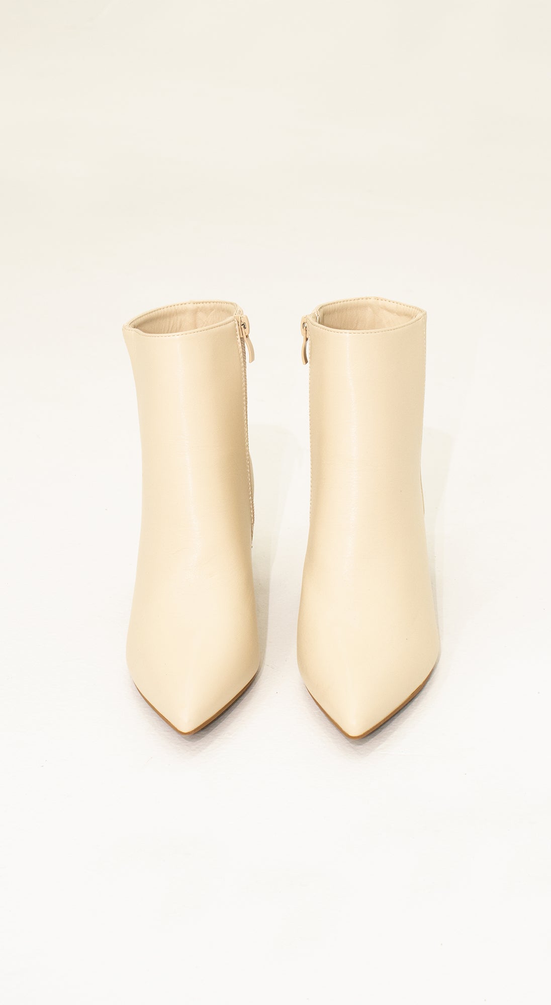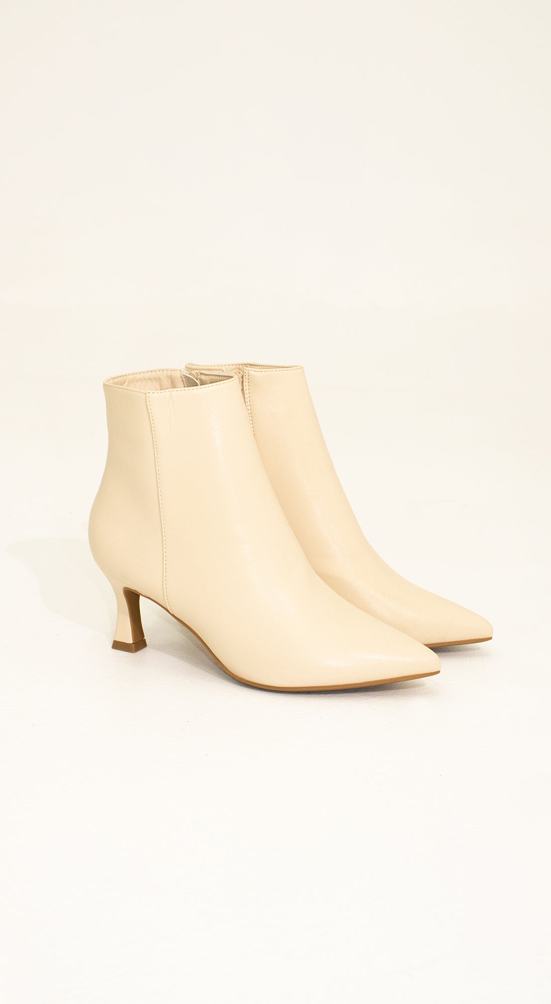 Botines color beige en cuero sintético y con tacón bajo. perfectos para la oficina o un evento casual.