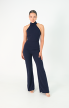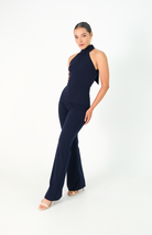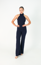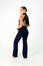 Este enterizo azul oscuro en tejido licrado presenta un diseño sofisticado con manga sisa y cuello alto. La espalda descubierta se realza con dos elegantes tiras que caen desde el cuello, creando un detalle sutil y refinado. Perfecto para un look moderno y elegante que destaca por su equilibrio entre estilo y comodidad.