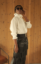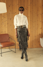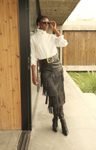 Falda 3/4 en cuero sintético combina comodidad y estilo gracias a su pretina ancha que realza la figura. Los bolsillos funcionales complementan su diseño práctico, mientras que las delicadas capas de flecos aportan un acabado sofisticado y distintivo.