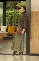 Esta falda larga satinada combina elegancia y comodidad gracias a su cinturilla con resorte, que se ajusta suavemente a la silueta. Su acabado satinado ofrece un brillo sutil y sofisticado.