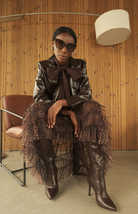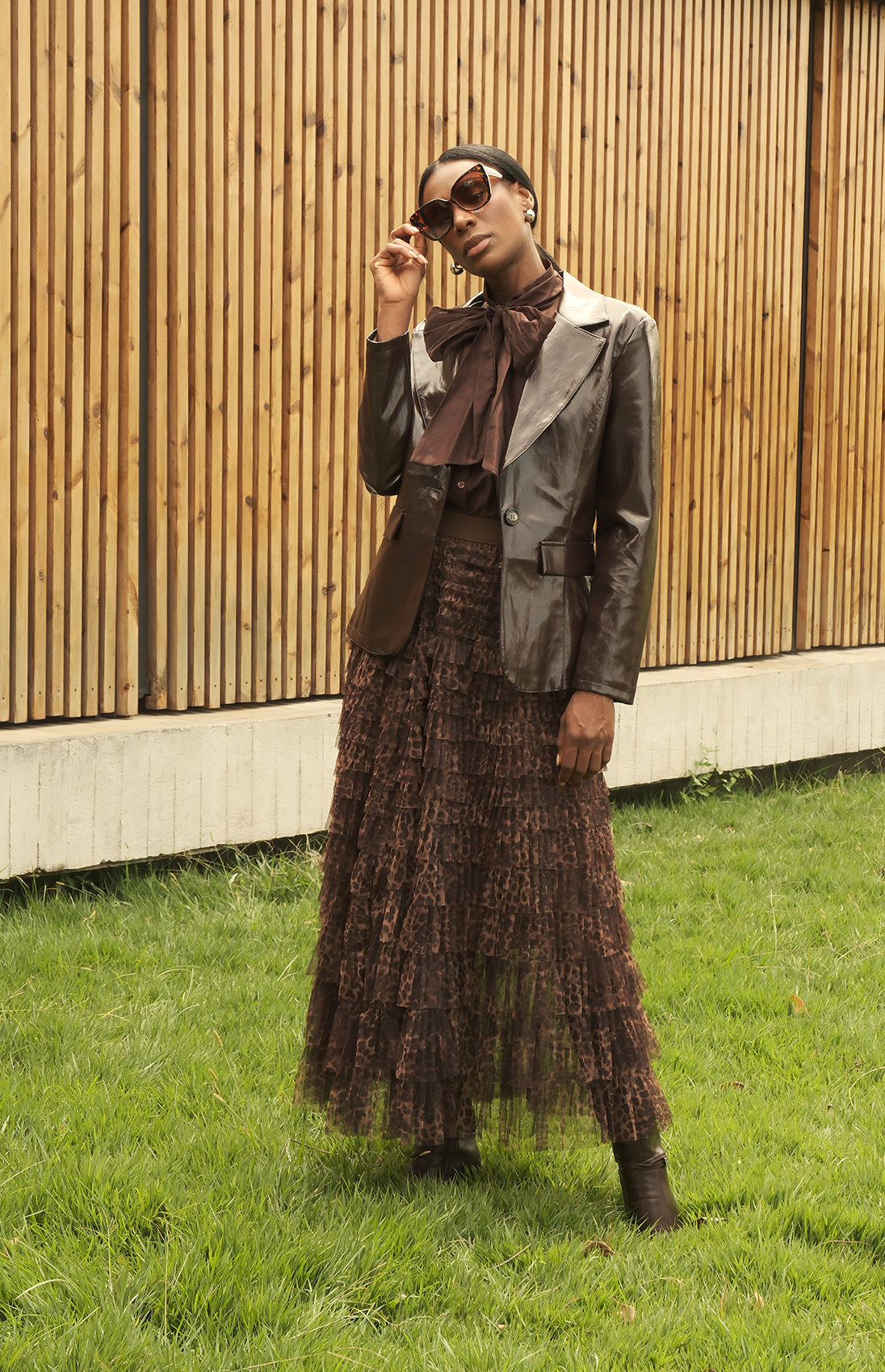 Esta falda con estampado animal print, el resorte en la cintura garantiza un ajuste cómodo y favorecedor, sus boleros aportan movimiento y feminidad, combinando con elegancia y estilo audaz.