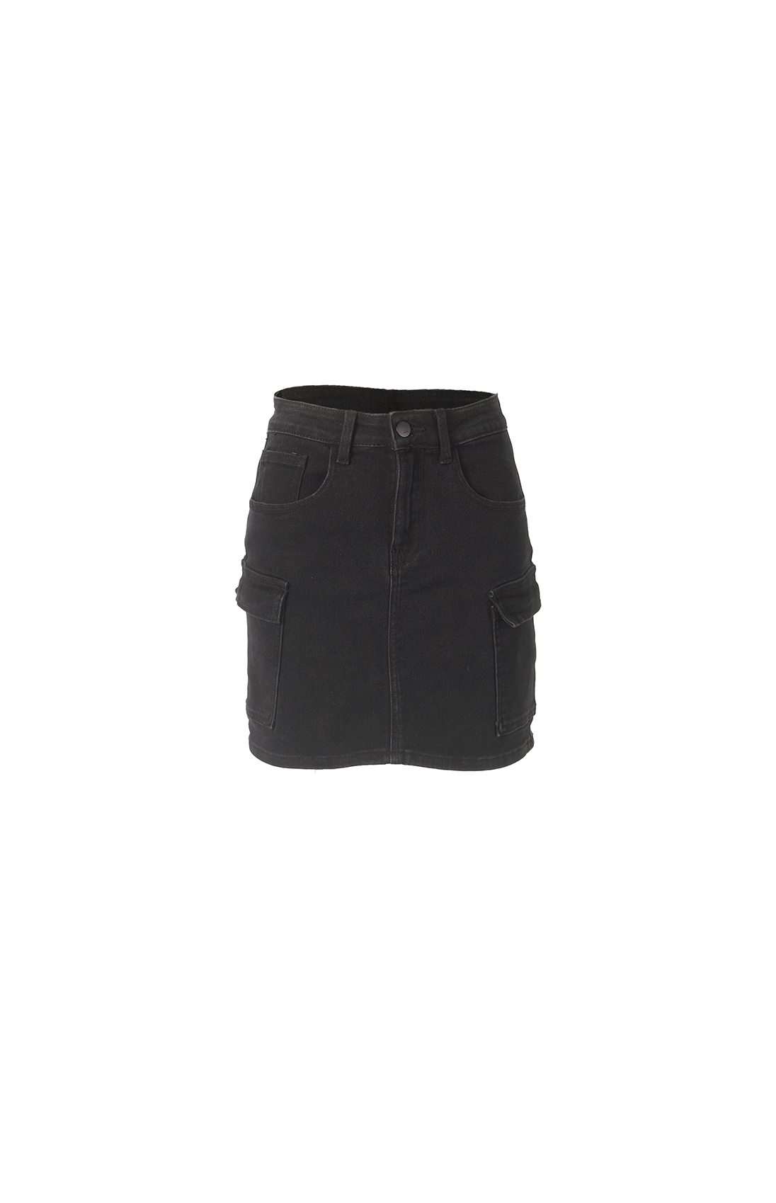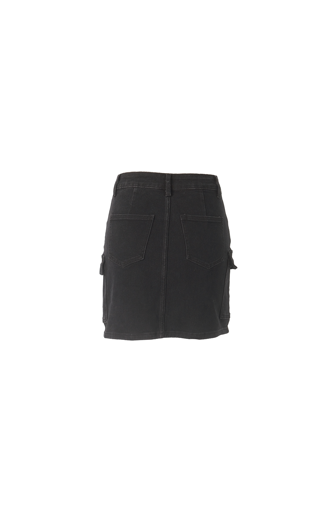 Funcionalidad y Estilo en Mini - Mini falda negra cargo en denim con dos bolsillos a los lados y dos en el frente. ¡Combina estilo y funcionalidad con esta mini falda, consíguela hoy mismo!
