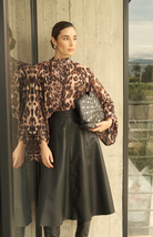 Falda en corte A en cuero sintético con costura en el centro, realza la silueta con elegancia. Cuenta con dos bolsillos discretos, ofreciendo funcionalidad sin perder estilo. Perfecta para un look moderno y sofisticado.