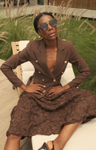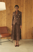 Esta elegante falda 3/4 presenta delicados estampados florales en relieve que aportan una textura refinada y un atractivo visual. Diseñada con una cinturilla ancha, ofrece un ajuste favorecedor que realza la comodidad y la silueta.