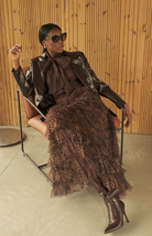 Esta camisa satinada de manga larga destaca por su acabado suave,  El detalle de las tiras en el cuello permite lucir un moño delicado, ideal para complementar un look elegante y sutil.