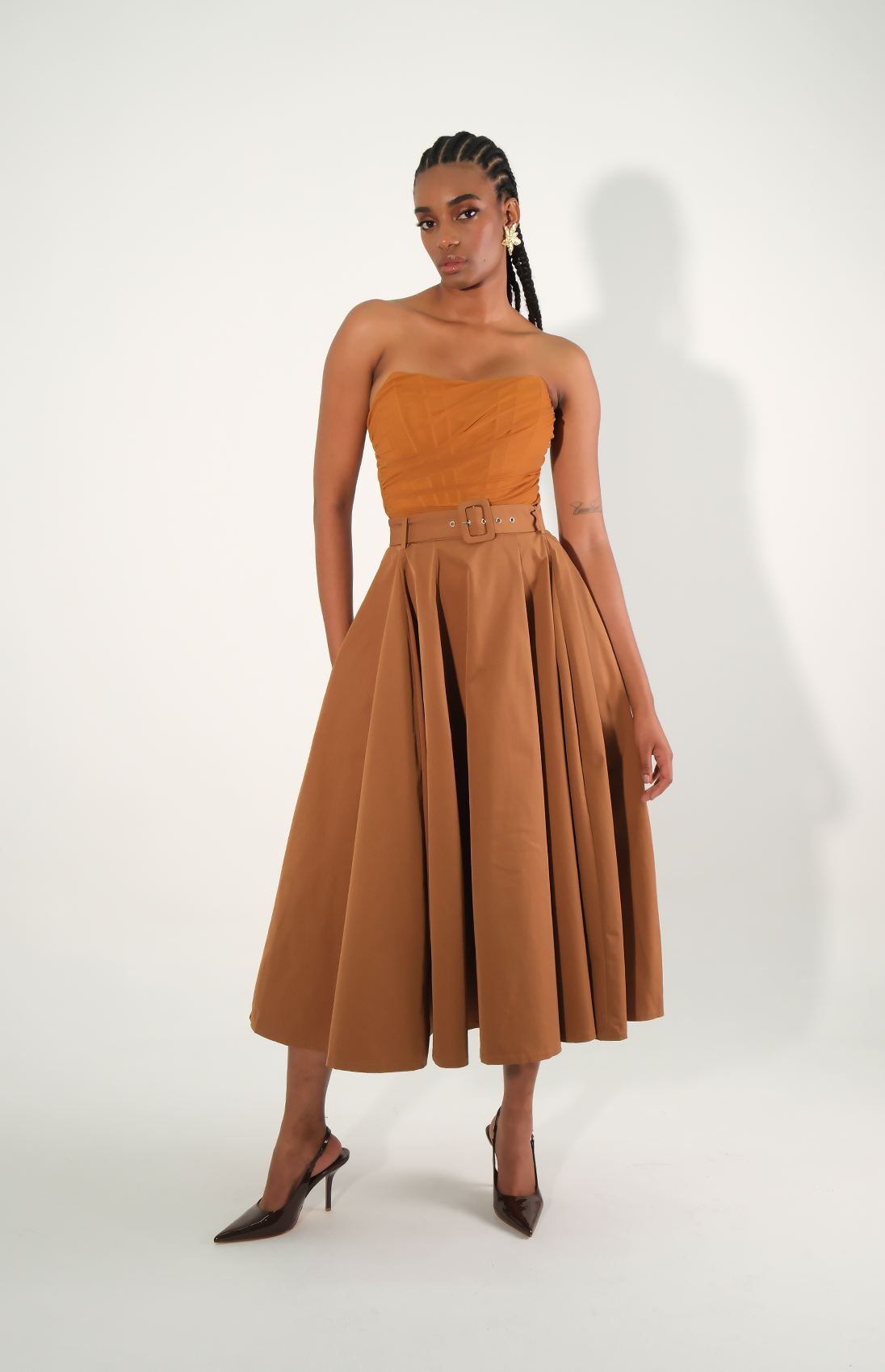 Falda en tono camel en tela antifluido de fácil mantenimiento con bolsillos funcionales, ideal para entornos profesionales y de cuidado. La prenda viene con correa que proporciona un ajuste seguro y cómodo durante toda la jornada. Su diseño clásico se adapta a diferentes estilos y ocasiones.