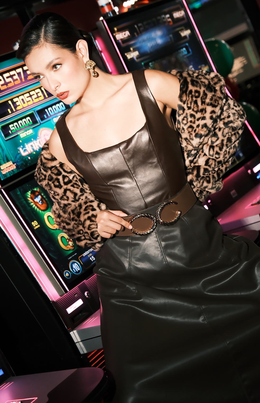 Blusa en cuero sintético manga siza con peplum en la cintura que realza la silueta y añade un toque contemporáneo.