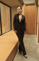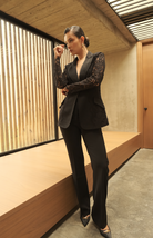 Pantalón de bota recta con bolsillos prácticos y botón forrado, que aporta un acabado refinado. Su corte clásico favorece la silueta, ofreciendo combina elegancia y funcionalidad