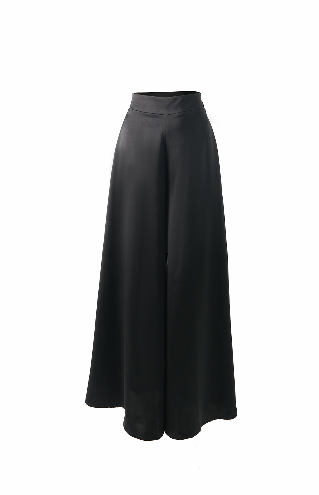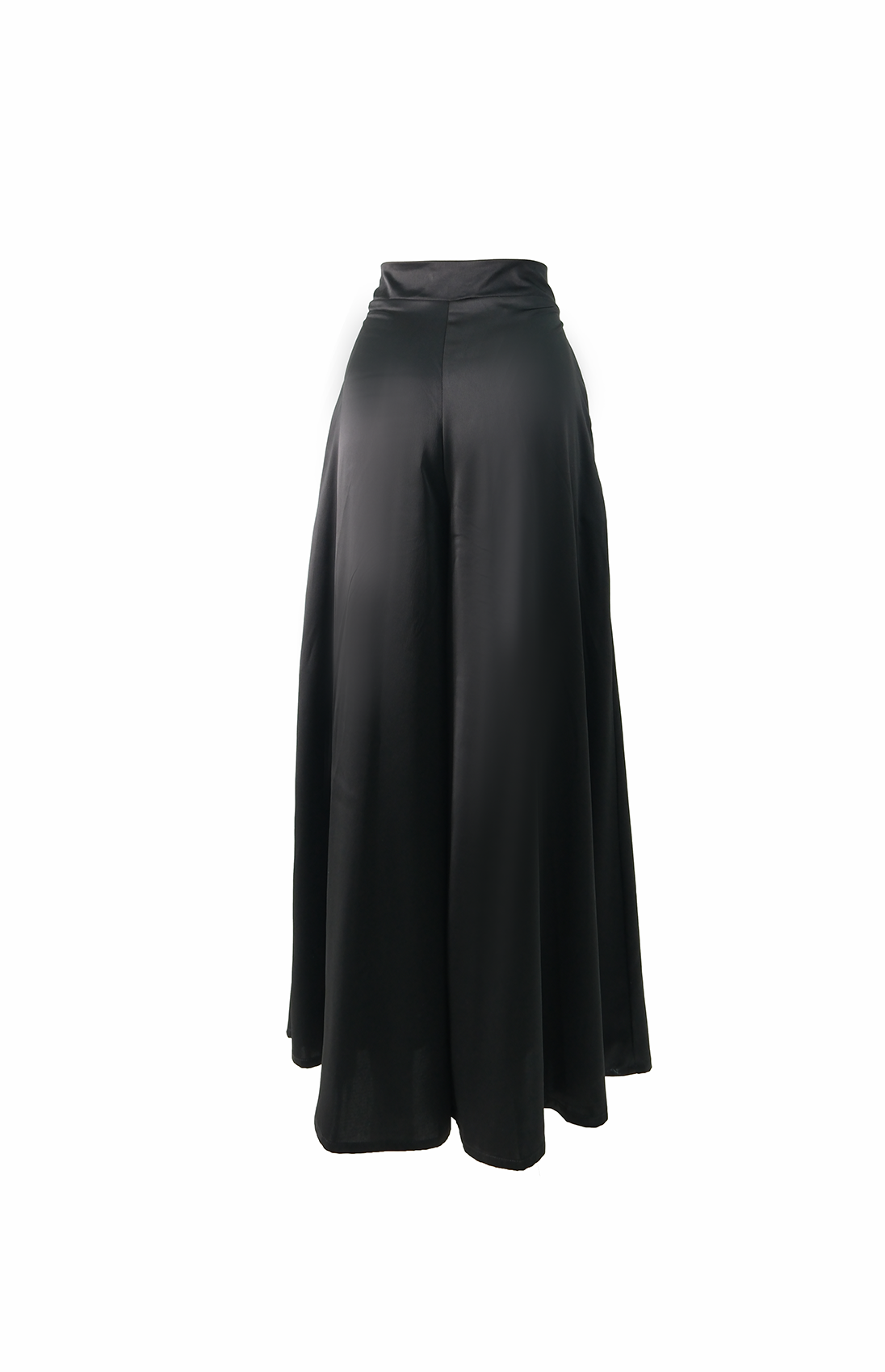 Este pantalón negro tipo palazzo combina elegancia y funcionalidad, con bolsillos prácticos y cierre lateral que aportan un toque refinado. Su diseño fluido y versátil lo hace ideal para diversas ocasiones, desde eventos formales hasta looks cotidianos con estilo.