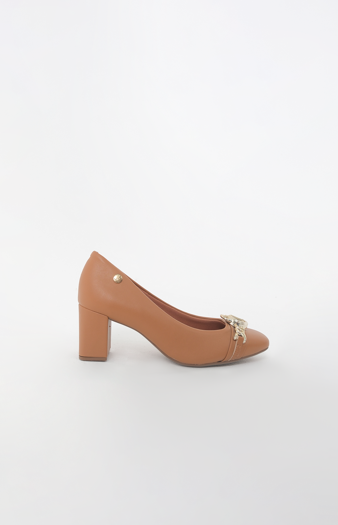 Stiletto en color camel con punta cuadrada y detalle de candado dorado. ¡Añade un toque sofisticado a tu look! ¡Compra ahora!