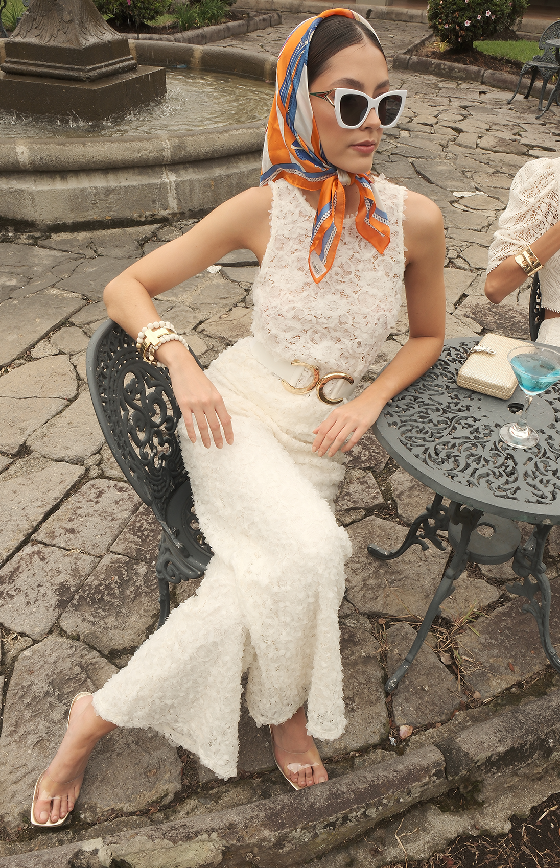 Pantalón beige de encaje, con resorte en la cintura, bota recta y forro interior. Un diseño delicado y elegante para un look cómodo.