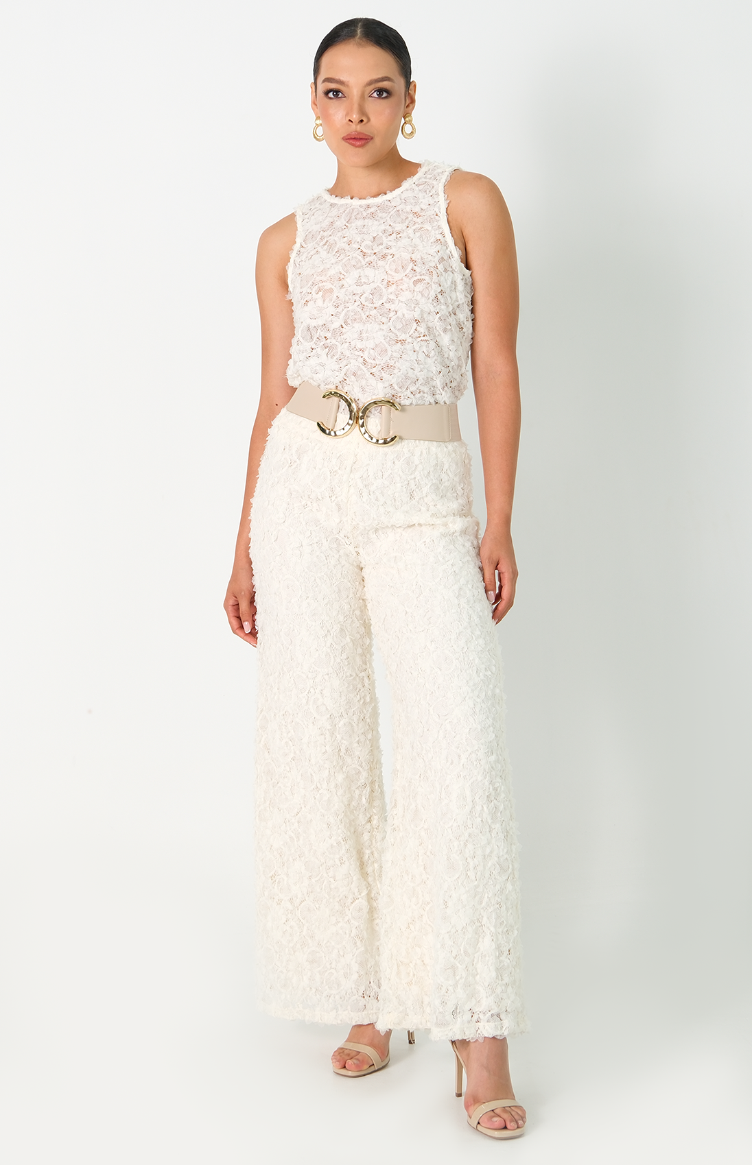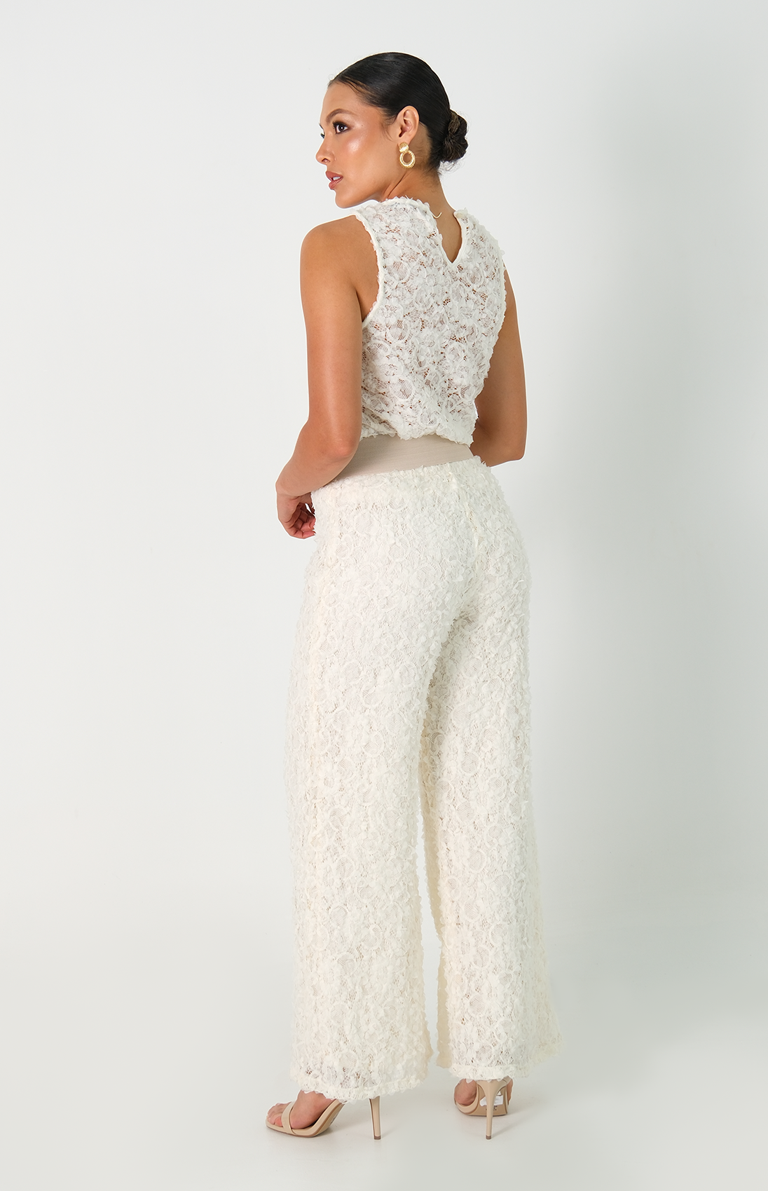 Blusa de encaje sin mangas, con cuello redondo. Un diseño delicado y elegante, perfecto para un look cómodo.