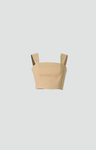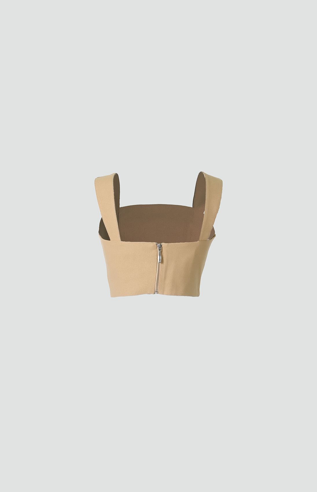 Este crop top de lino beige, con tiras gruesas y cierre en la parte trasera, es el complemento perfecto para la falda de lino a juego. Su diseño fresco y elegante lo convierte en una prenda versátil, ideal para combinar con otras piezas de tu guardarropa.